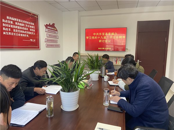 12月3日上午,东至县委编办召开党的十九届六中全会精神学习研讨交流会议。县委党史学习教育第一巡回指导组组长吴多祥到会指导。会议集中学习了《中国共产党第十九届中央委员会第六次全体会议公报》,班子成员就学习贯彻落实全会精神结合机构编制工作进行了交流发言。会议要求全体干部职工,持续抓好十九届六中全会精神学习宣传贯彻,并把学习贯彻全会精神同当前机构编制工作重点任务和谋划明年工作思路紧密结合起来,为东至高质量发展提供体制机制保障。