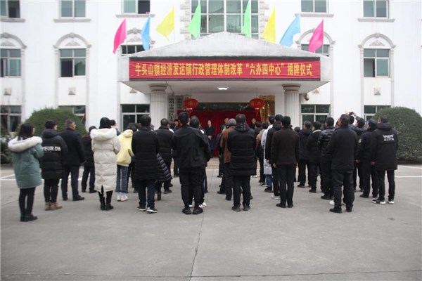 1月21日上午,贵池区举行经济发达镇“六办四中心”揭牌仪式。此次揭牌,标志着贵池区牛头山镇行政管理体制改革工作正式进入实质运行阶段。揭牌仪式由牛头山镇镇长钱权柱主持。池州市委组织部副部长、市委编办主任吴金刚,贵池区委组织部副部长、区委编办主任黄晓明参加揭牌仪式并讲话。市委编办副主任燕丽,区政协副主席、数据资源管理局局长司月中,区司法局党组成员管俊,牛头山镇党委书记王亚敏及其他党政班子成员等参加揭牌仪式。