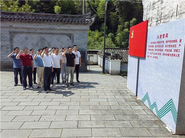 重温一次入党誓词。6月26日,区委编办党支部组织党员干部赴牯牛降红色基地,通过参观文化展示馆、红军标语墙,学习北上抗日先遣队转战牯牛降山区革命斗争历史,接受革命传统教育。随后,全体党员佩戴党员徽章,举起右拳,面对鲜红的党旗重温入党誓词,誓言铮铮,红心向党。