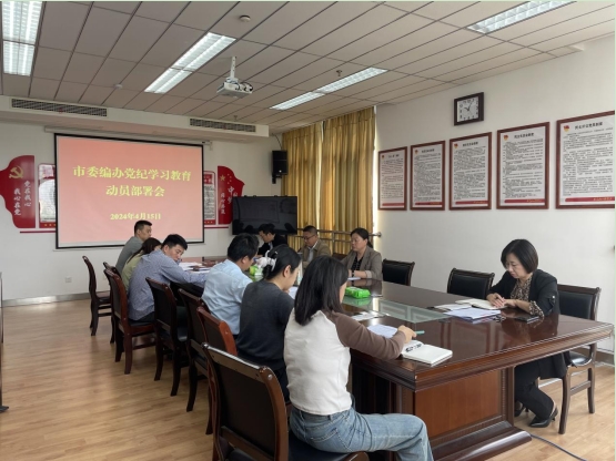 4月15日,市委编办召开理论学习中心组学习(扩大)会议,深入学习领会习近平总书记关于党纪学习教育的重要讲话、重要指示精神,以及《中共中央办公厅关于在全党开展党纪学习教育的通知》和中央党的建设工作领导小组会议精神,并对开展党纪学习教育进行动员部署。
